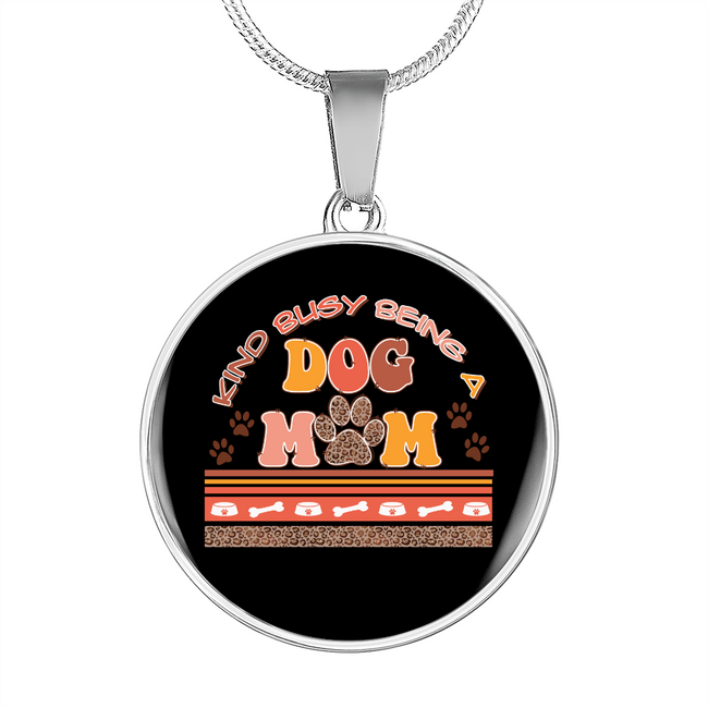 Busy Dog Mom Circle Necklace Stainless Steel or 18k Gold 18-22"