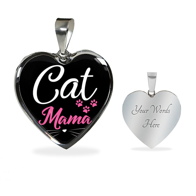 Cat Lover Necklace Cat Mama Heart Pendant Stainless Steel or 18k Gold 18-22"