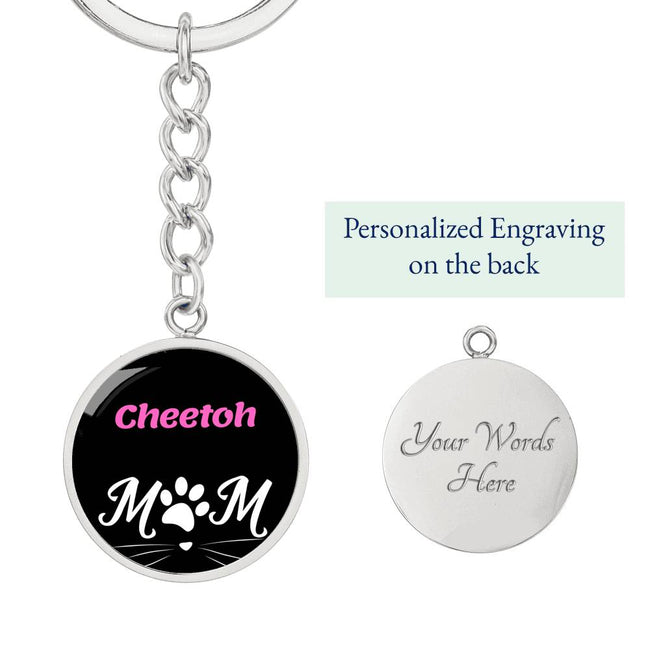 Cheetoh Cat Mom Keychain Stainless Steel or 18k Gold Circle Pendant