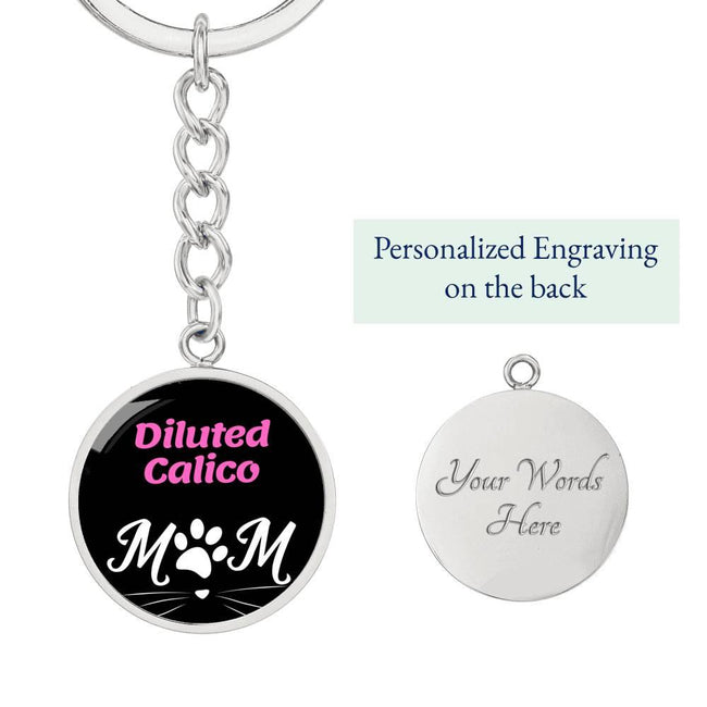 Diluted Calico Cat Mom Keychain Stainless Steel or 18k Gold Circle Pendant
