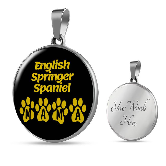 English Springer Spaniel Mama Circle Necklace Stainless Steel or 18k Gold 18-22" Dog Owner Lover