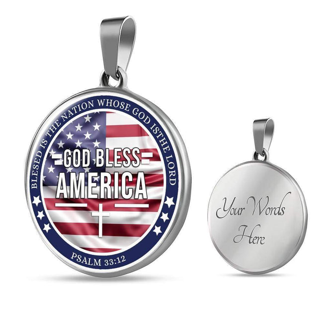 God Bless America Circle Necklace Stainless Steel 18-22"