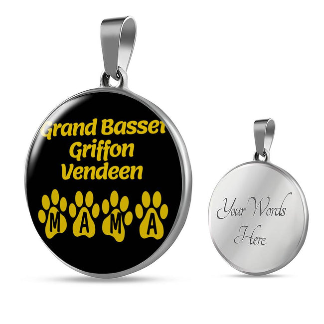 Grand Basset Griffon Vendeen Mama Circle Necklace Stainless Steel or 18k Gold 18-22" Dog Owner Lover