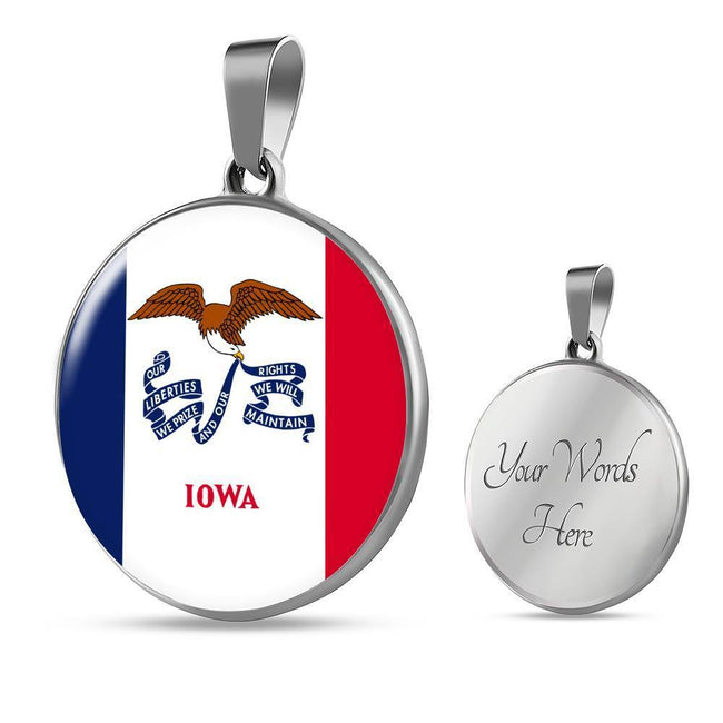 Iowa State Flag Circle Pendant Stainless Steel or 18k Gold Circle Pendant 18-22"