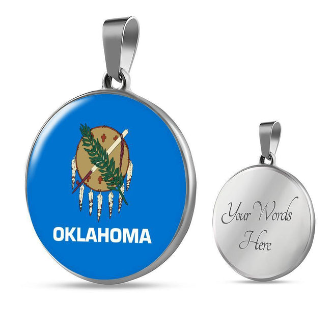 Oklahoma State Flag Necklace Stainless Steel or 18k Gold Circle Pendant 18-22"