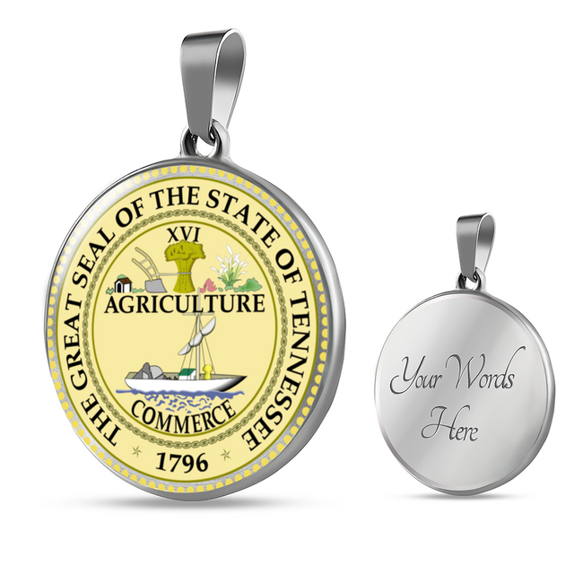Tennessee State Seal Necklace Circle Pendant Stainless Steel or 18k Gold 18-22"