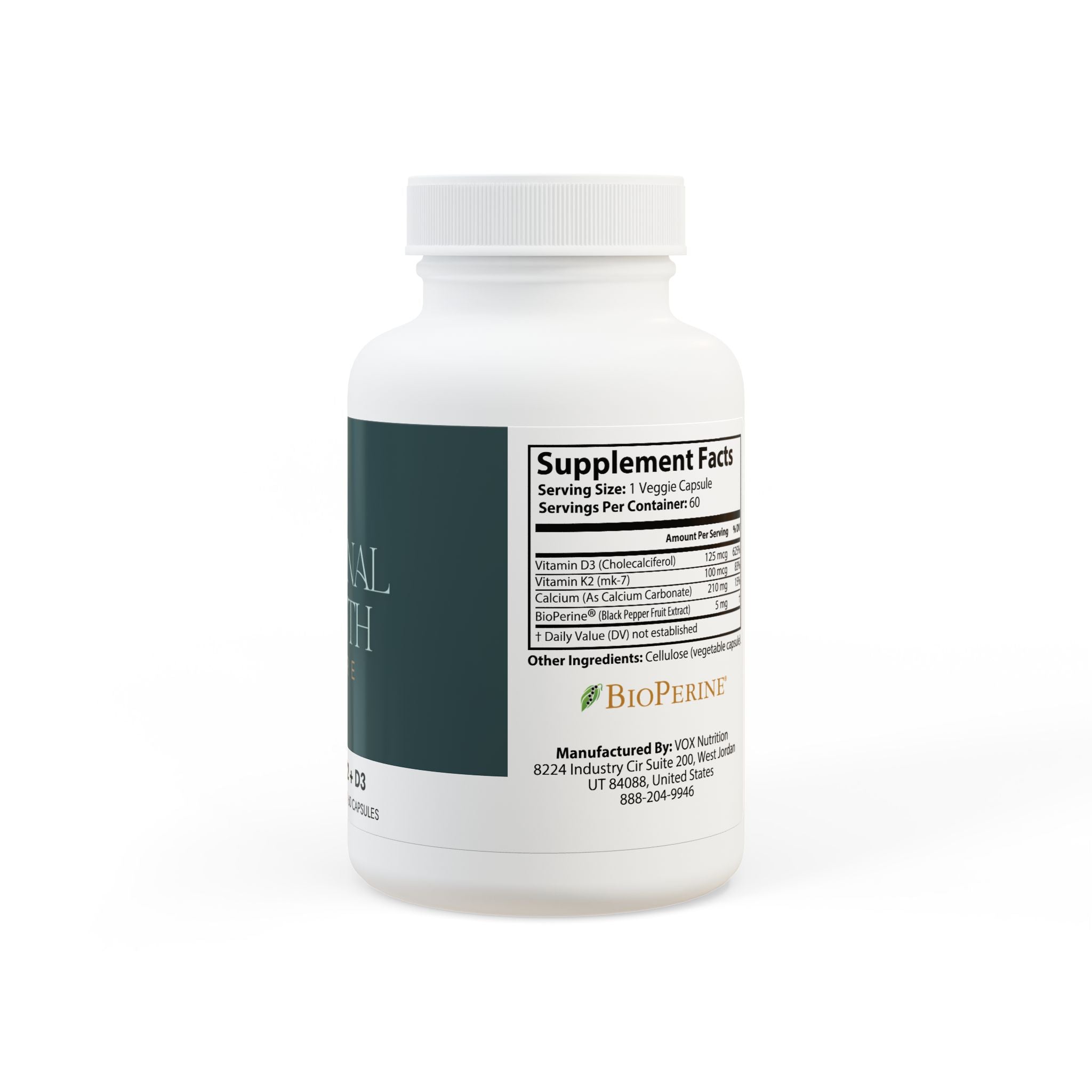 • Supports Bone Health & Calcium AbsorptionVitamin D3 enhances calcium absorption, while Vitamin K2 (MK-7) directs calcium to the bones and teeth, preventing arterial buildup