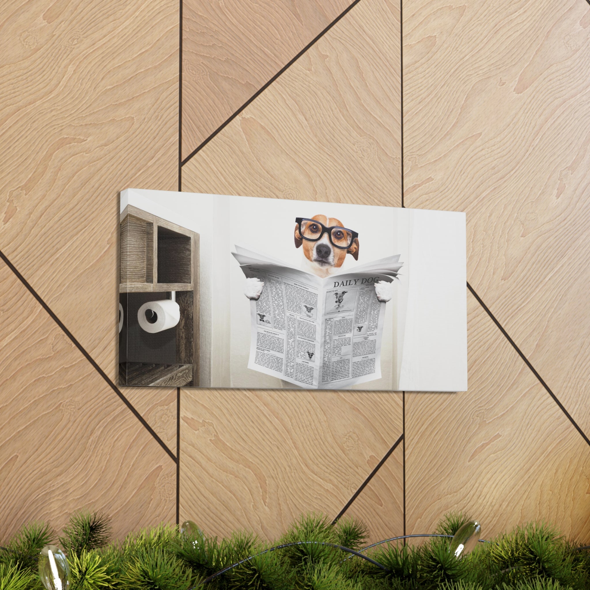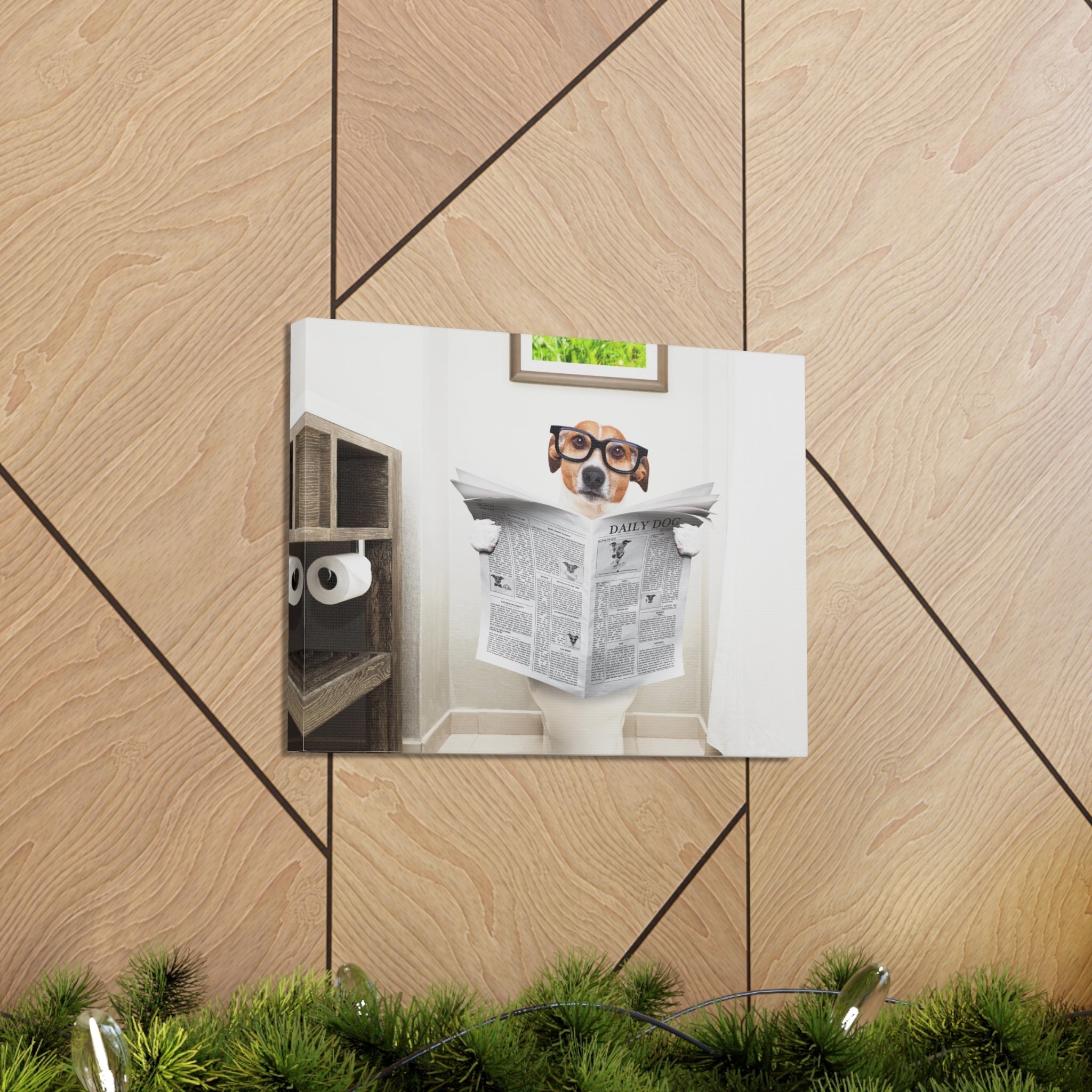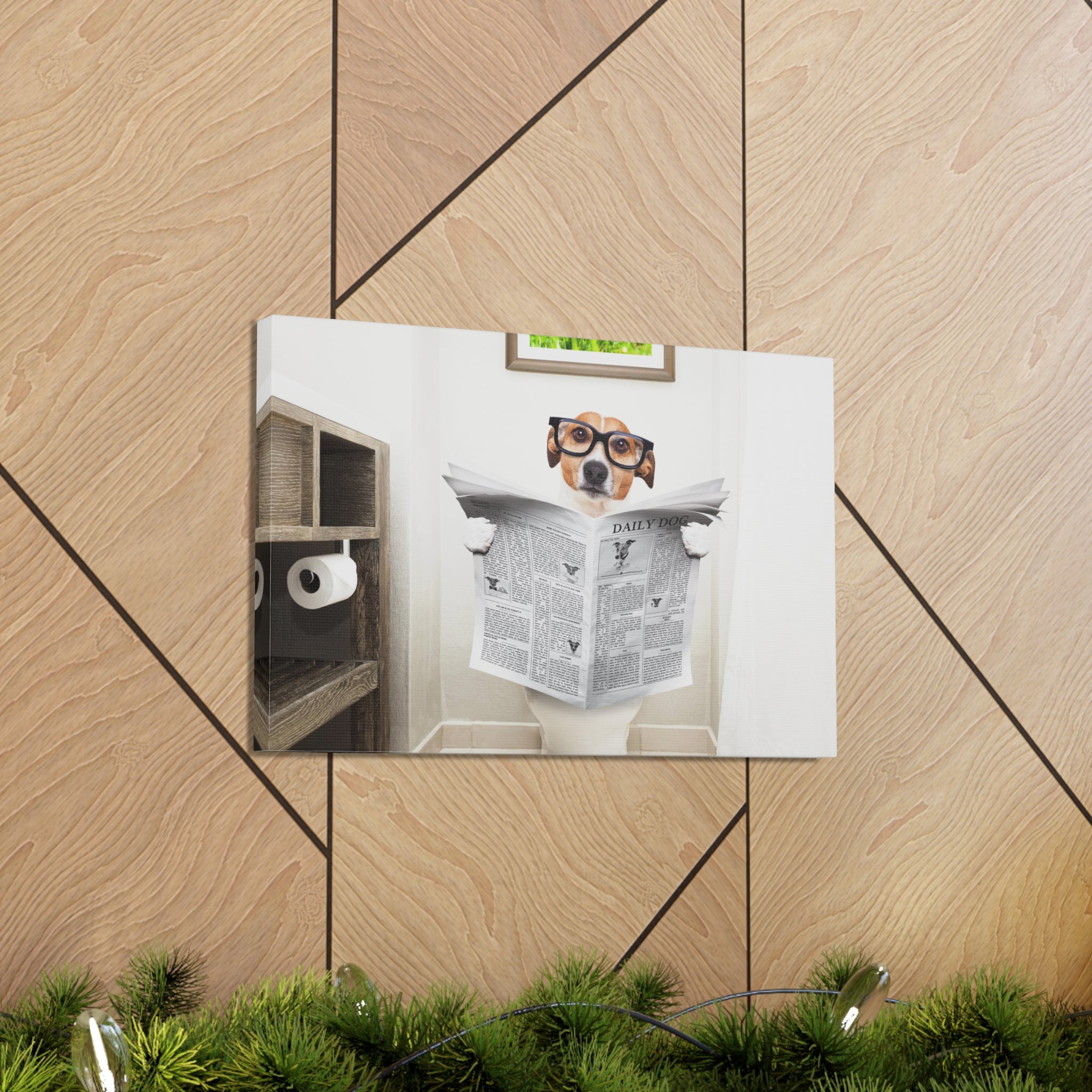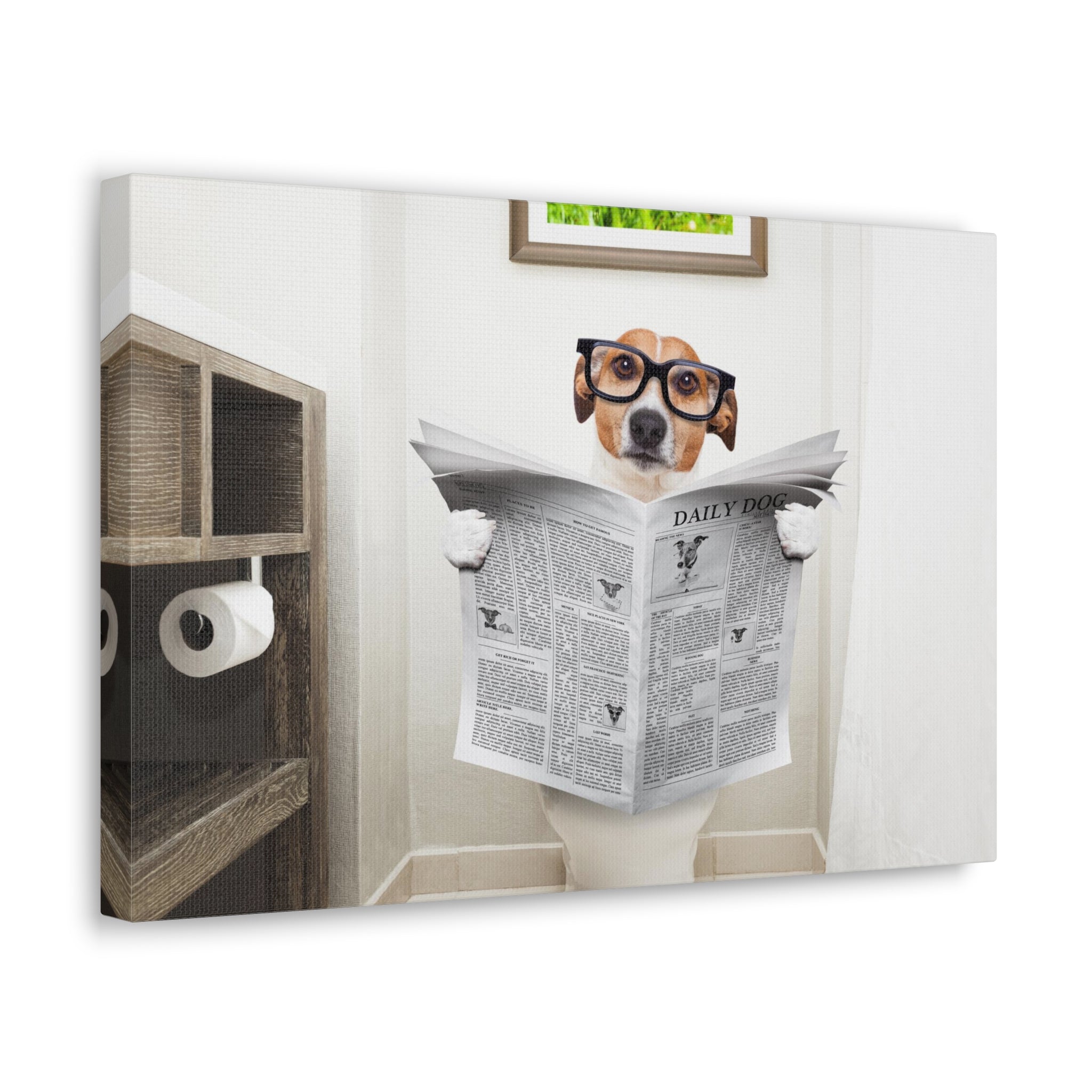 Jack Russell Reading Newspaper On Toilet Funny Canvas Wall Art for Home Decor Ready-to-Hang