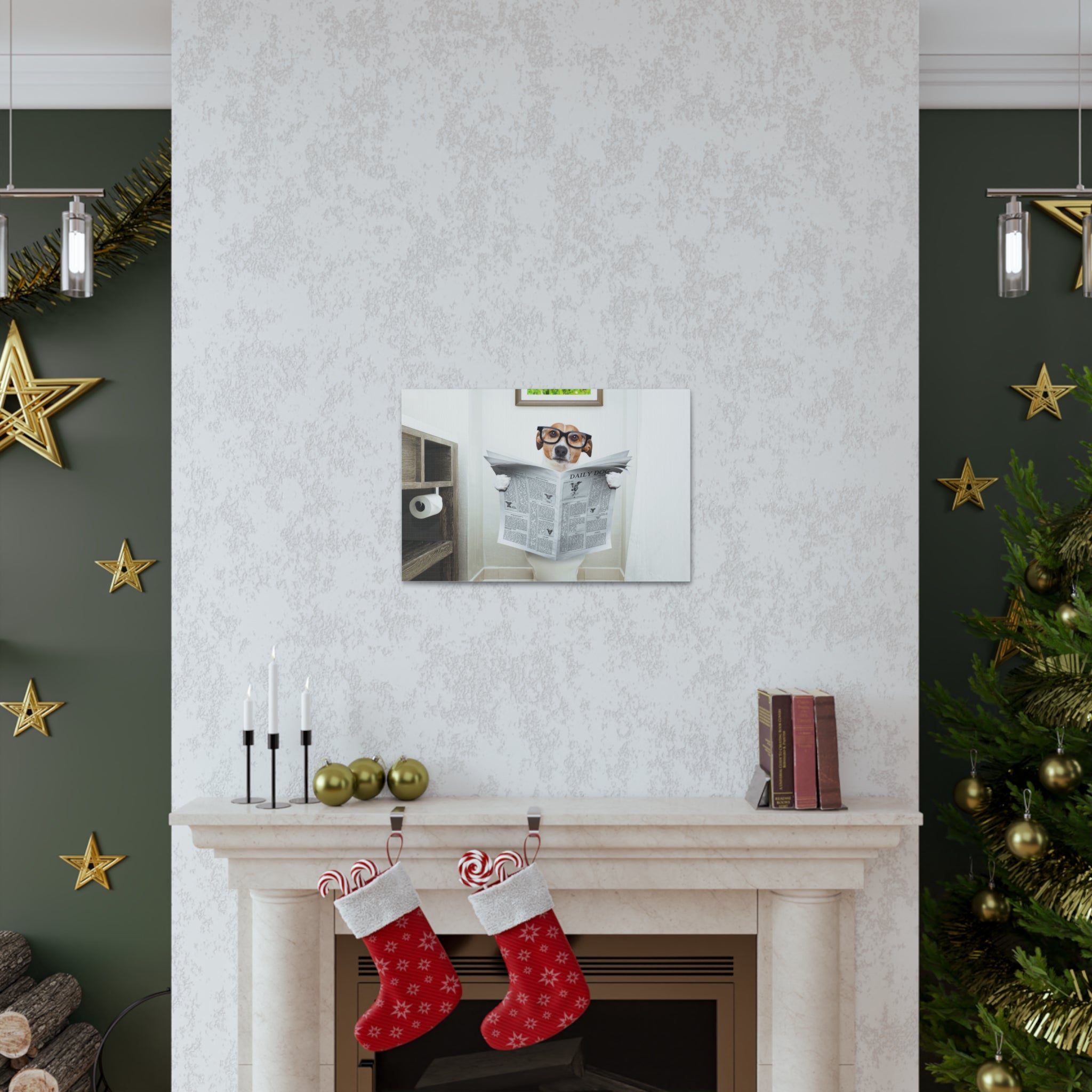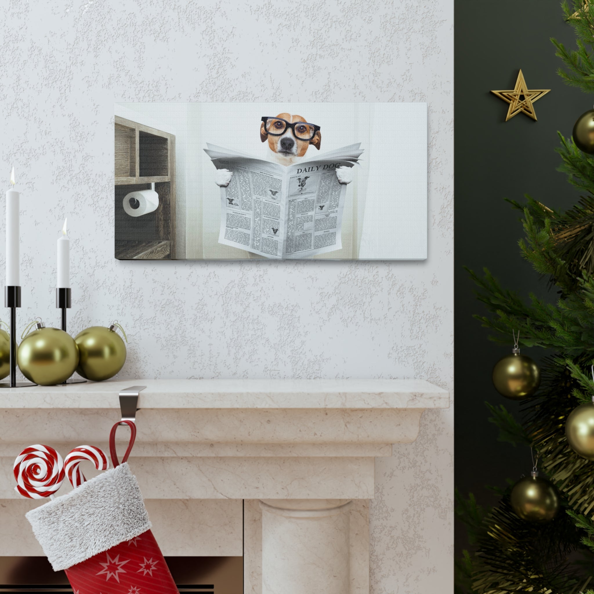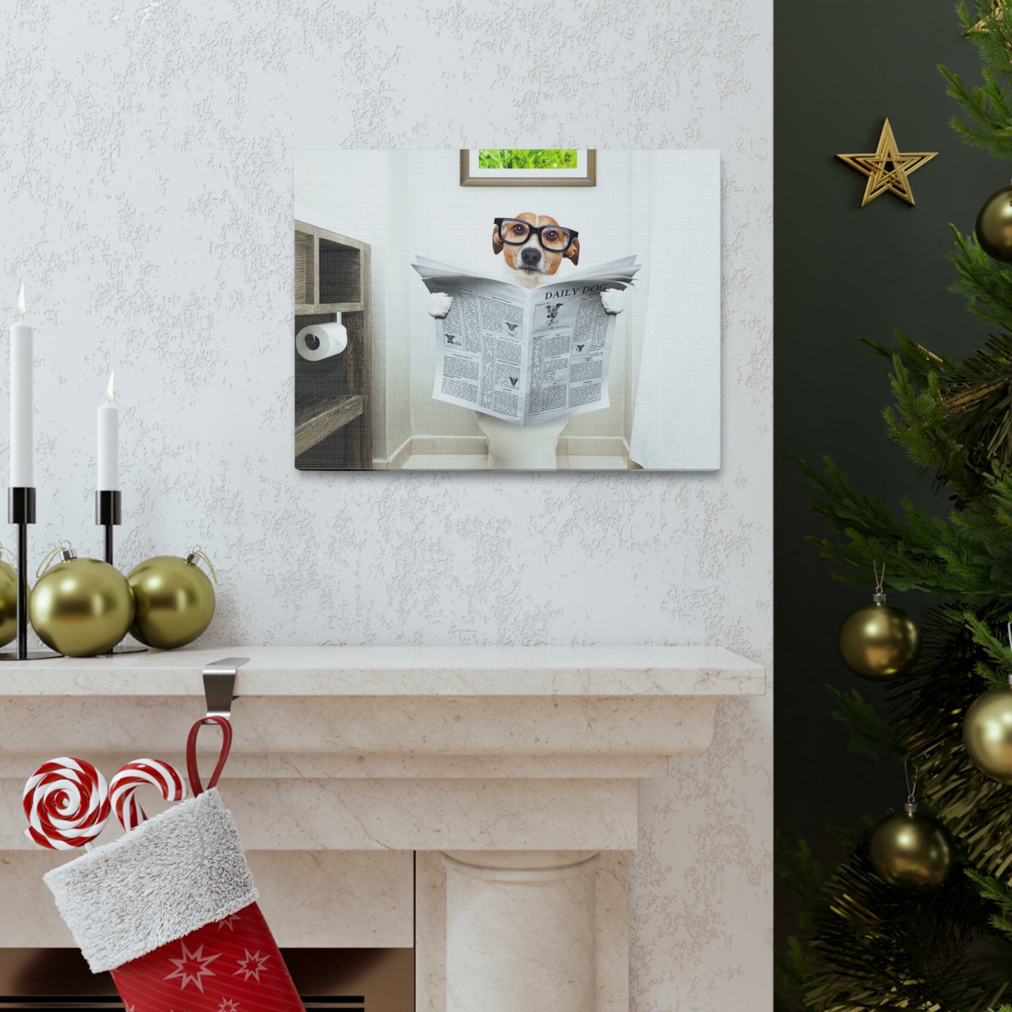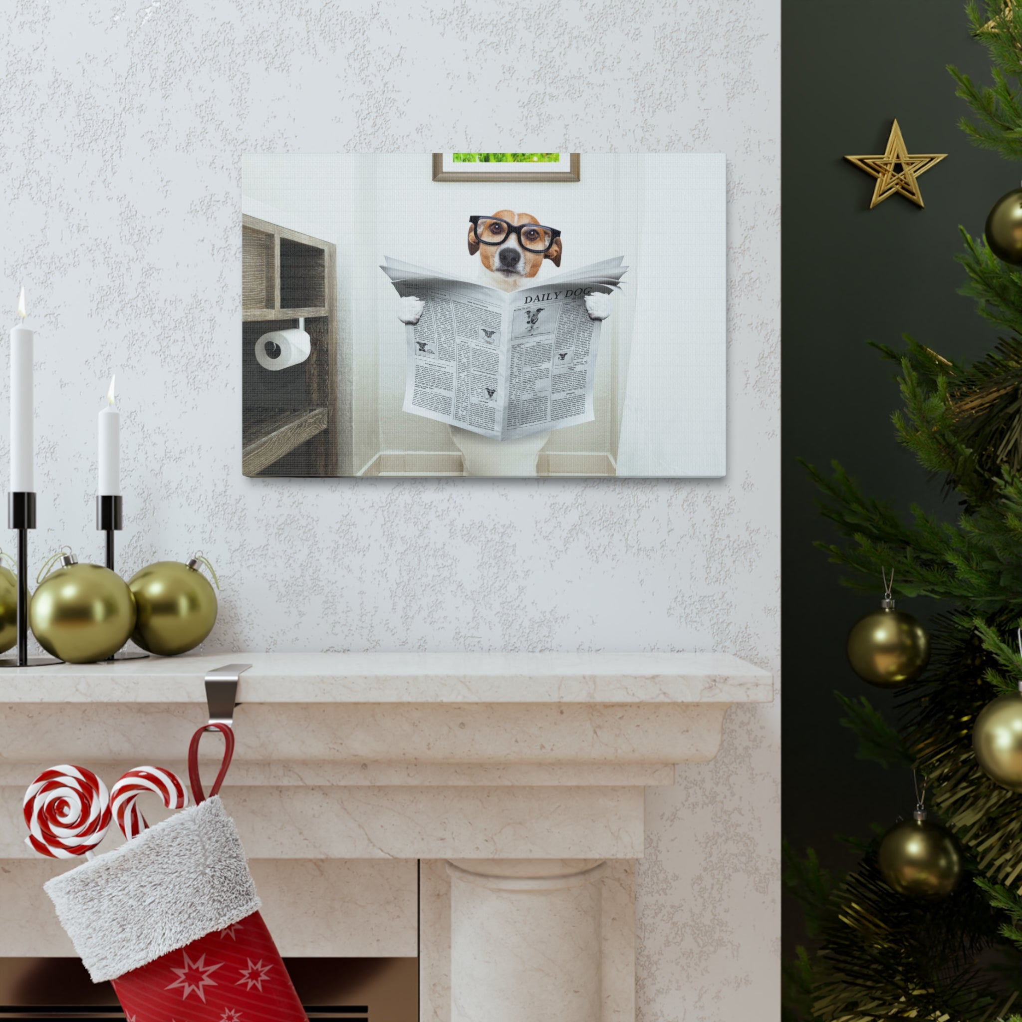 Jack Russell Reading Newspaper On Toilet Funny Canvas Wall Art for Home Decor Ready-to-Hang