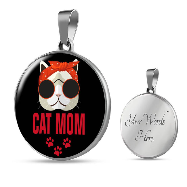 Cat Mom Necklace Circle Necklace Stainless Steel or 18k Gold 18-22"