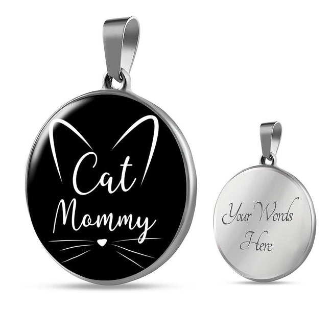 Cat Lover Necklace Cat Mommy Necklace Circle Pendant Stainless Steel or 18k Gold 18-22"