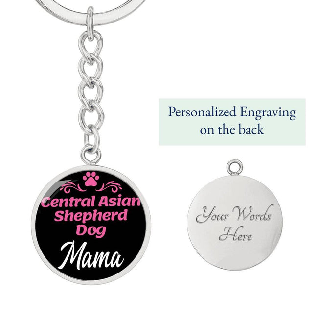 Dog Mom Keyring Central Asian Shepherd Dog Mama Circle Keychain Stainless Steel or 18k Gold