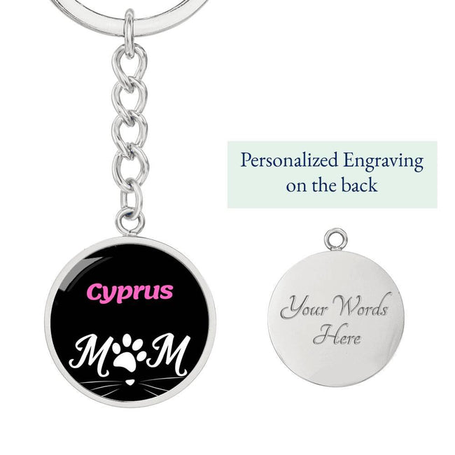Cyprus Cat Mom Keychain Stainless Steel or 18k Gold Circle Pendant
