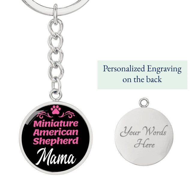 Dog Mom Keyring Miniature American Shepherd Mama Circle Keychain Stainless Steel or 18k Gold