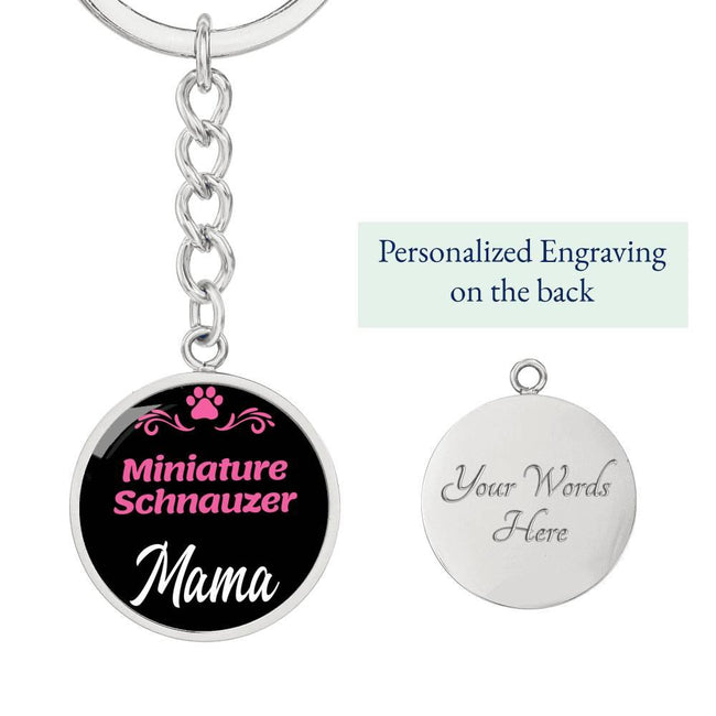 Dog Mom Keyring Miniature Schnauzer Mama Circle Keychain Stainless Steel or 18k Gold