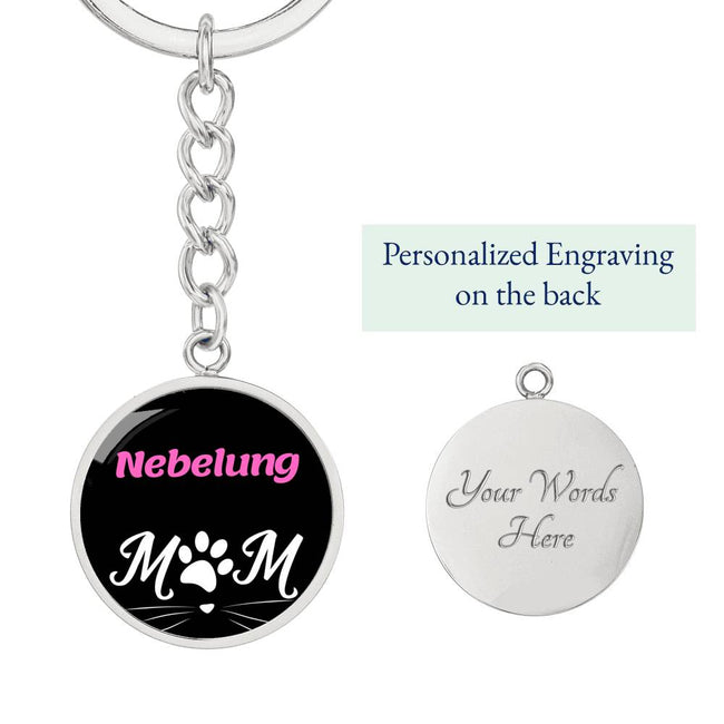 Nebelung Cat Mom Keychain Stainless Steel or 18k Gold Circle Pendant
