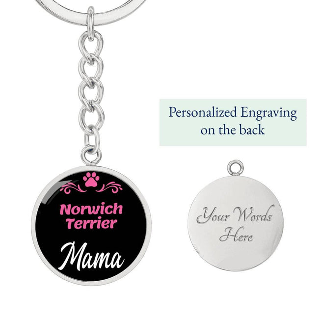 Dog Mom Keyring Norwich Terrier Mama Circle Keychain Stainless Steel or 18k Gold