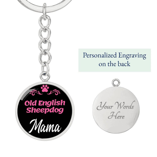 Dog Mom Keyring Old English Sheepdog Mama Circle Keychain Stainless Steel or 18k Gold