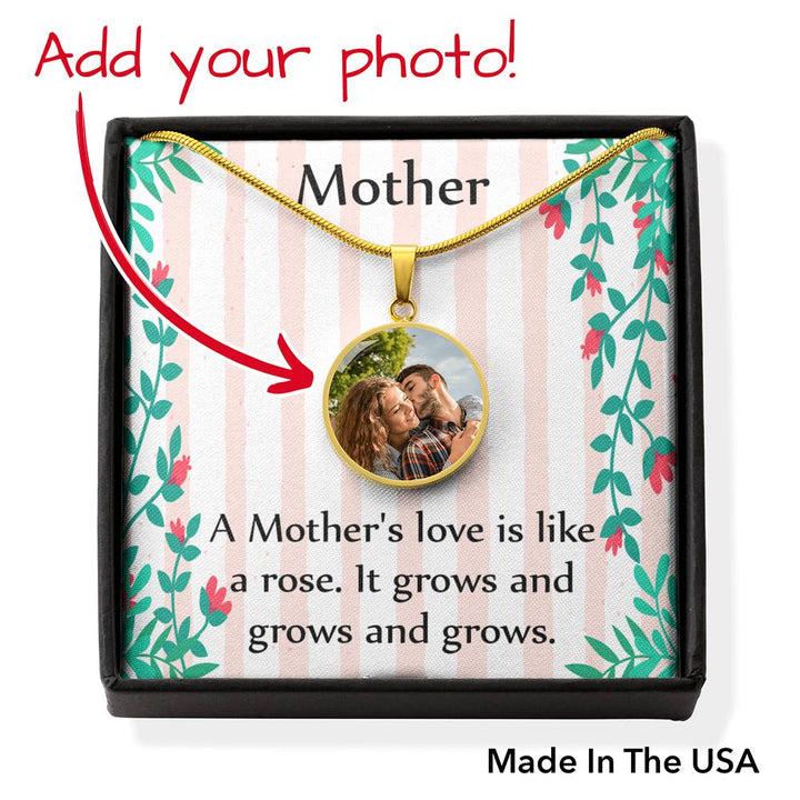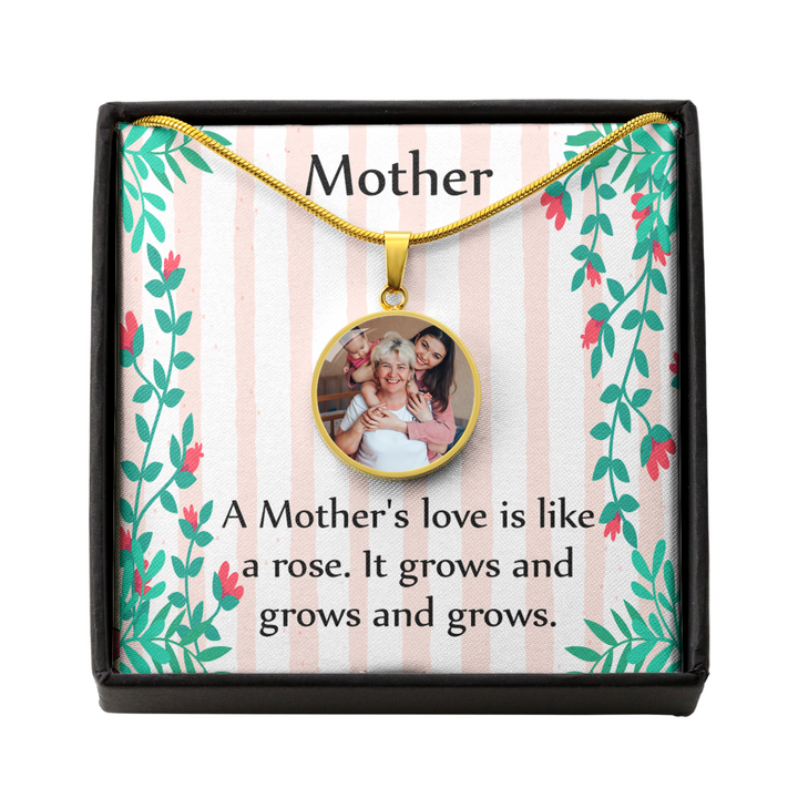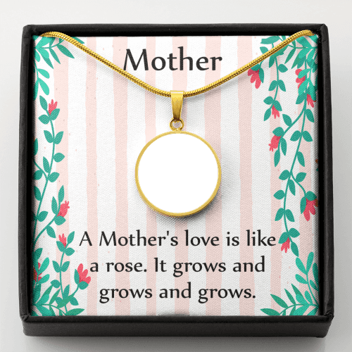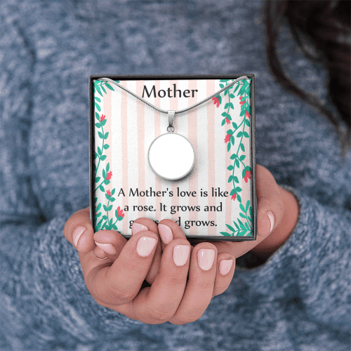 To Mom Personalized Necklace Like A Rose Mother's Love Message Circle Pendant Stainless Steel or 18k Gold 18-22"