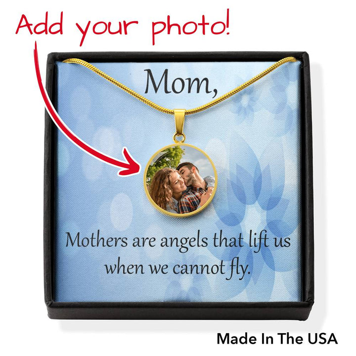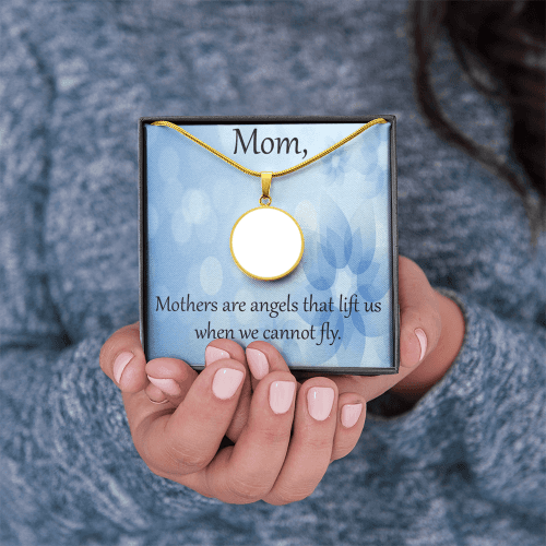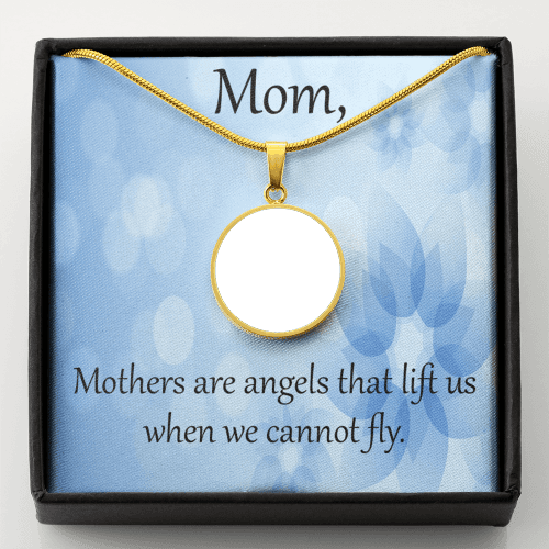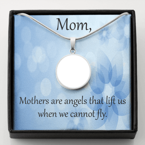 To Mom Personalized Necklace Mothers Are Angels Message Circle Pendant Stainless Steel or 18k Gold 18-22"