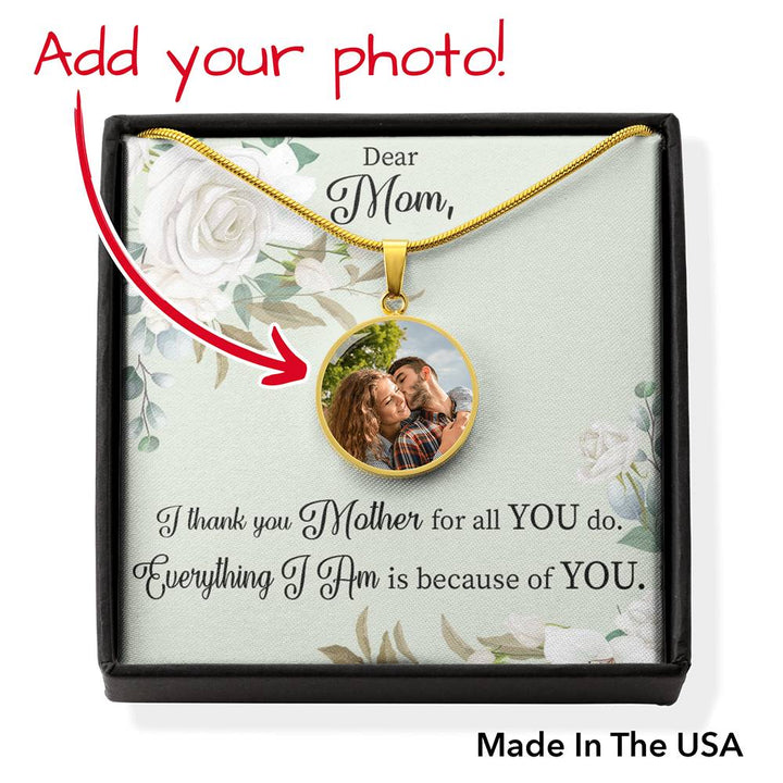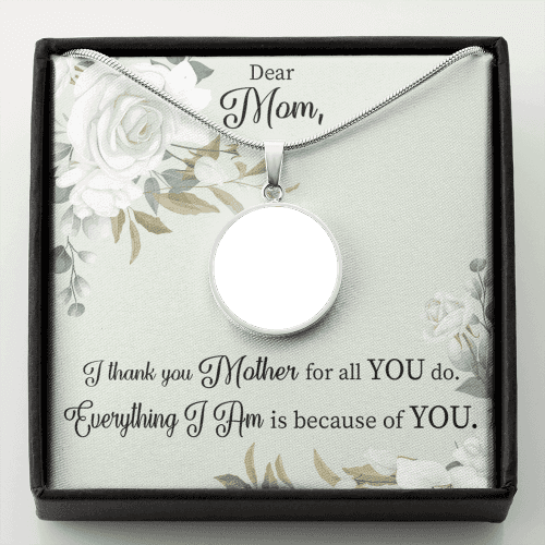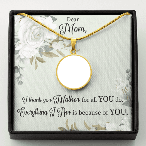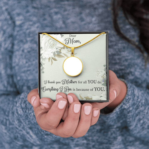 To Mom Personalized Necklace Thank You Mom Message Circle Pendant Stainless Steel or 18k Gold 18-22"