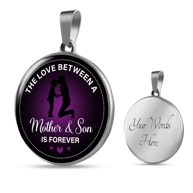 The Love Between A Mother & Son Is Forever Necklace Circle Pendant Stainless Steel or 18k Gold 18-22