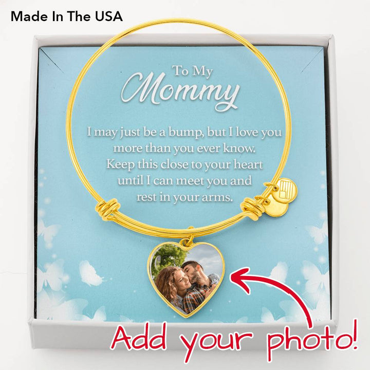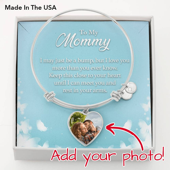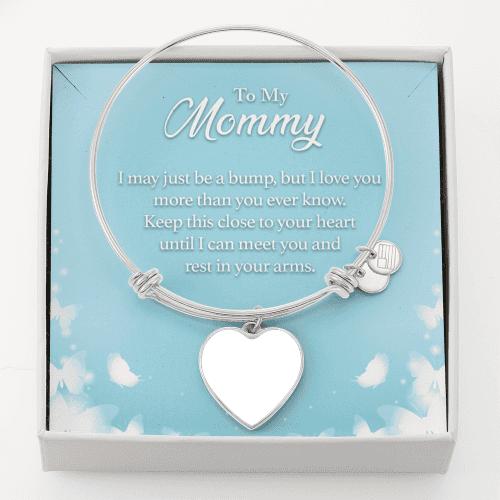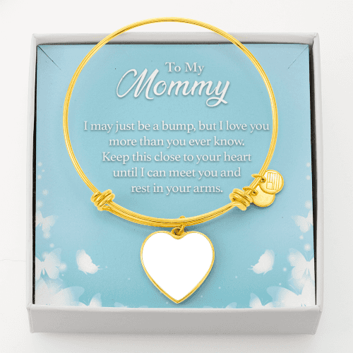 To Mom Personalized Rest in Your Heart Heart Bangle Stainless Steel or 18k Gold 18-22"