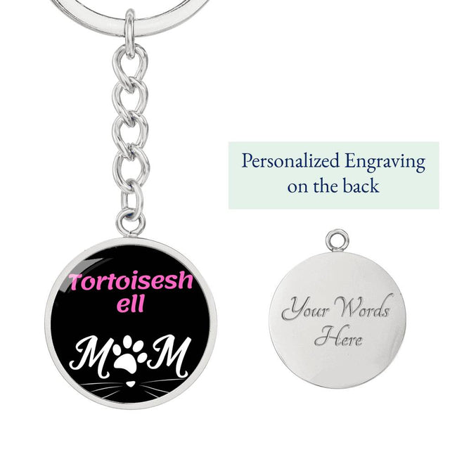 Tortoiseshell Cat Mom Keychain Stainless Steel or 18k Gold Circle Pendant