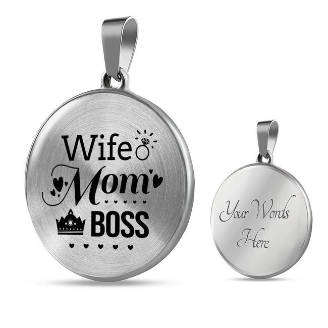 Wife. Mom. Boss Circle Necklace Stainless Steel or 18k Gold 18-22"