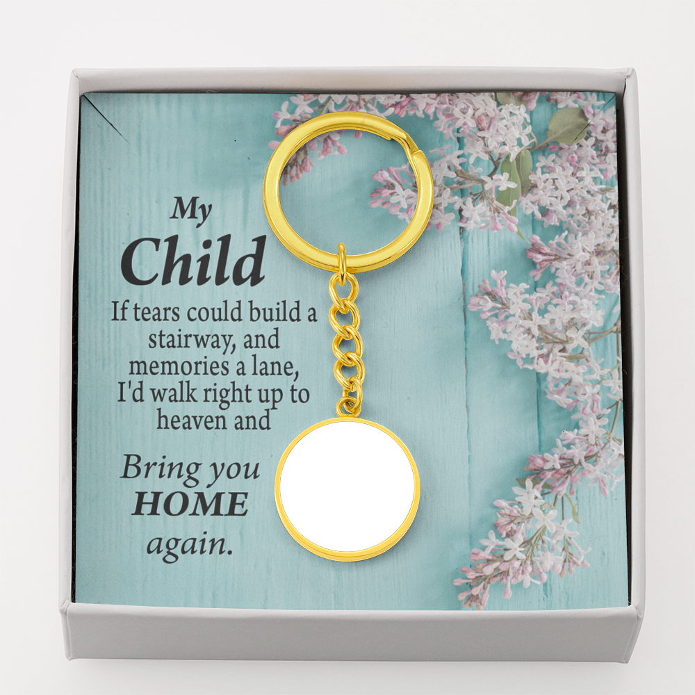 To My Child Personalized Memorial Remembrance If Tears Message Circle Keychain Stainless Steel or 18k Gold