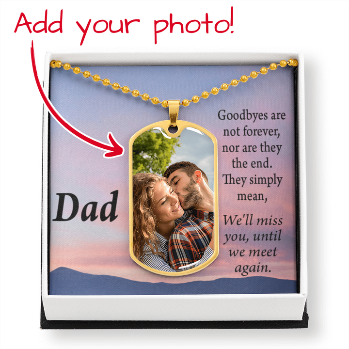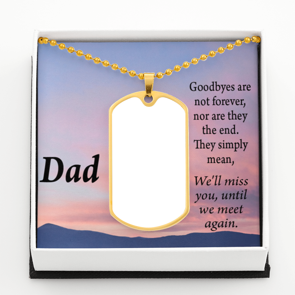 To Dad Personalized Memorial Remembrance Goodbye Message Necklace Dog Tag Stainless Steel or 18k Gold 24" Chain