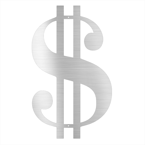 Dollar Sign Steel Sign Laser Cut Powder Coated Home & Office Metal Wall Decor Multiple Sizes & Colors