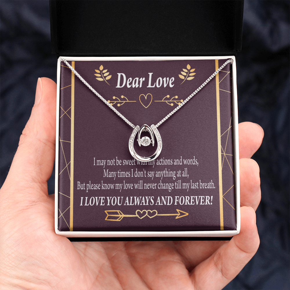 To My Girlfriend Apology to Wife Girlfriend My Love Lucky Horseshoe Necklace Message Card 14k w CZ Crystals