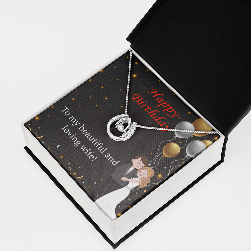To My Wife Birthday Beautiful and Loving Wife Lucky Horseshoe Necklace Message Card 14k w CZ Crystals