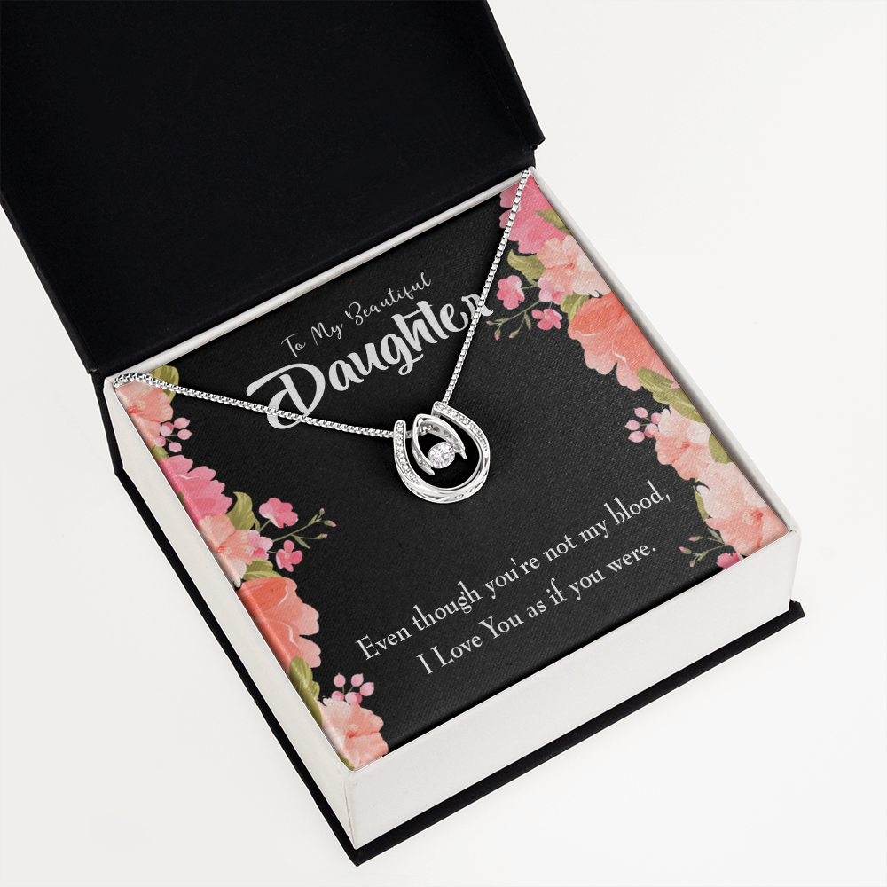 To My Daughter Beautiful Daughter Lucky Horseshoe Necklace Message Card 14k w CZ Crystals