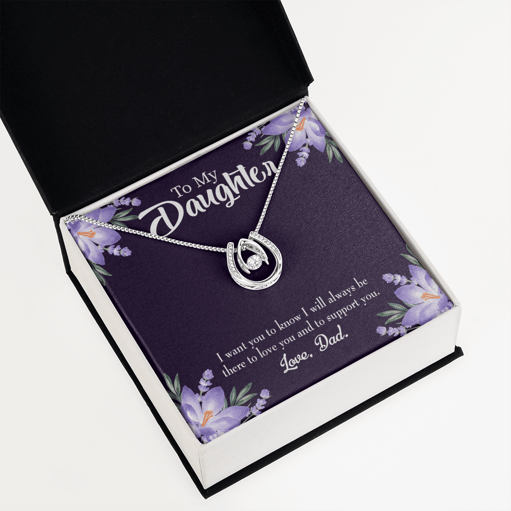 To My Daughter Dad Supports You Lucky Horseshoe Necklace Message Card 14k w CZ Crystals