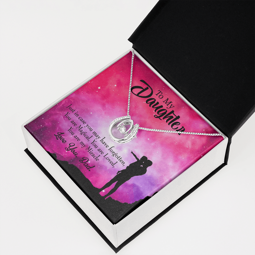 To My Daughter You Are My Miracle From Dad Lucky Horseshoe Necklace Message Card 14k w CZ Crystals