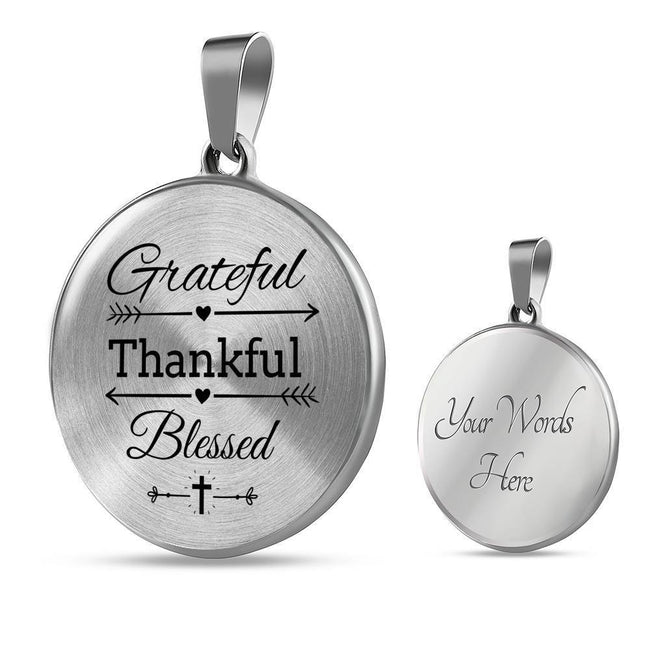 Grateful Thankful Blessed Circle Necklace Stainless Steel or 18k Gold 18-22"