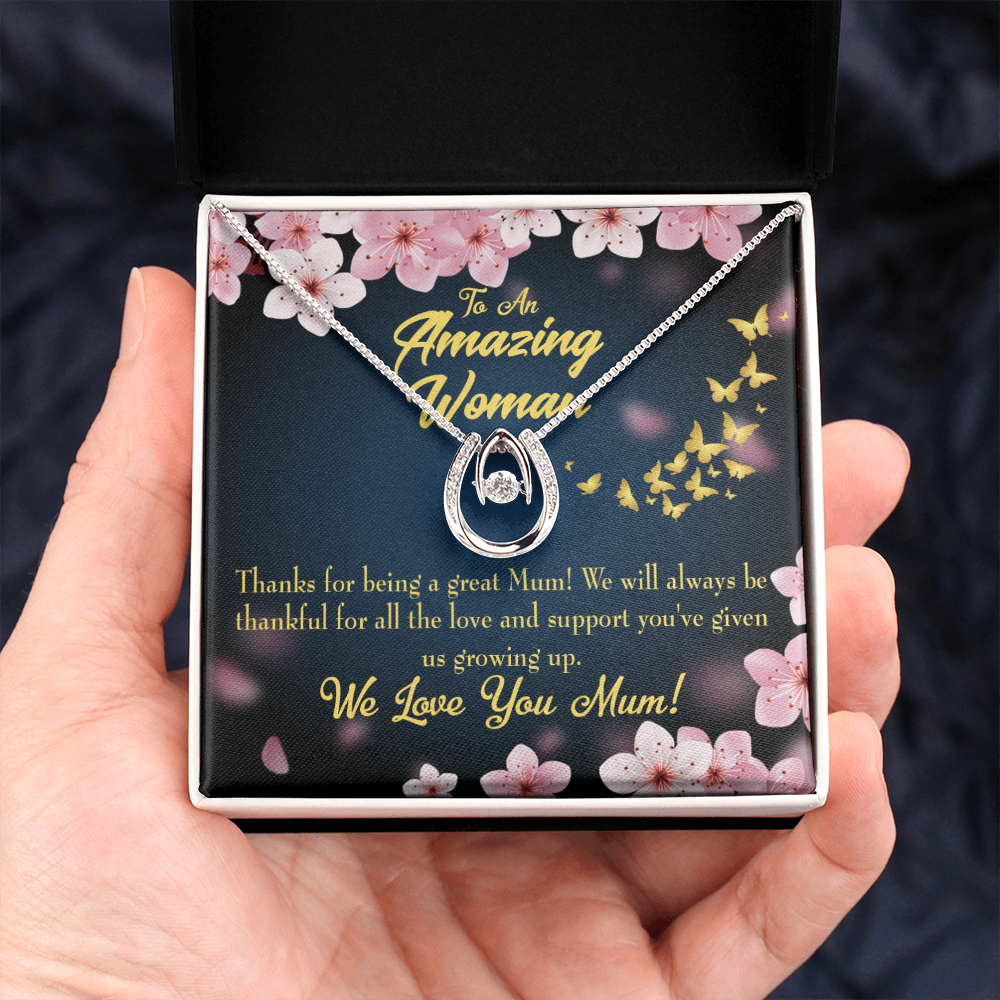 To My Mopm Great Mum Lucky Horseshoe Necklace Message Card 14k w CZ Crystals