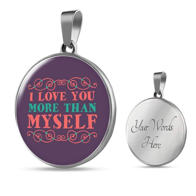 I Love You More Than Myself Circle Necklace Stainless Steel or 18k Gold 18-22"
