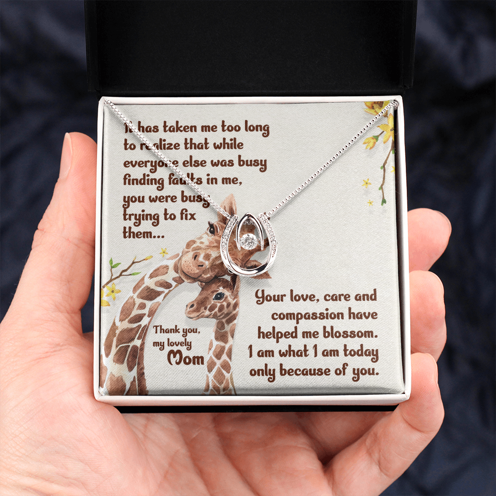 Thank You Mom Final Lucky Horseshoe Necklace Message Card 14k w CZ Crystals