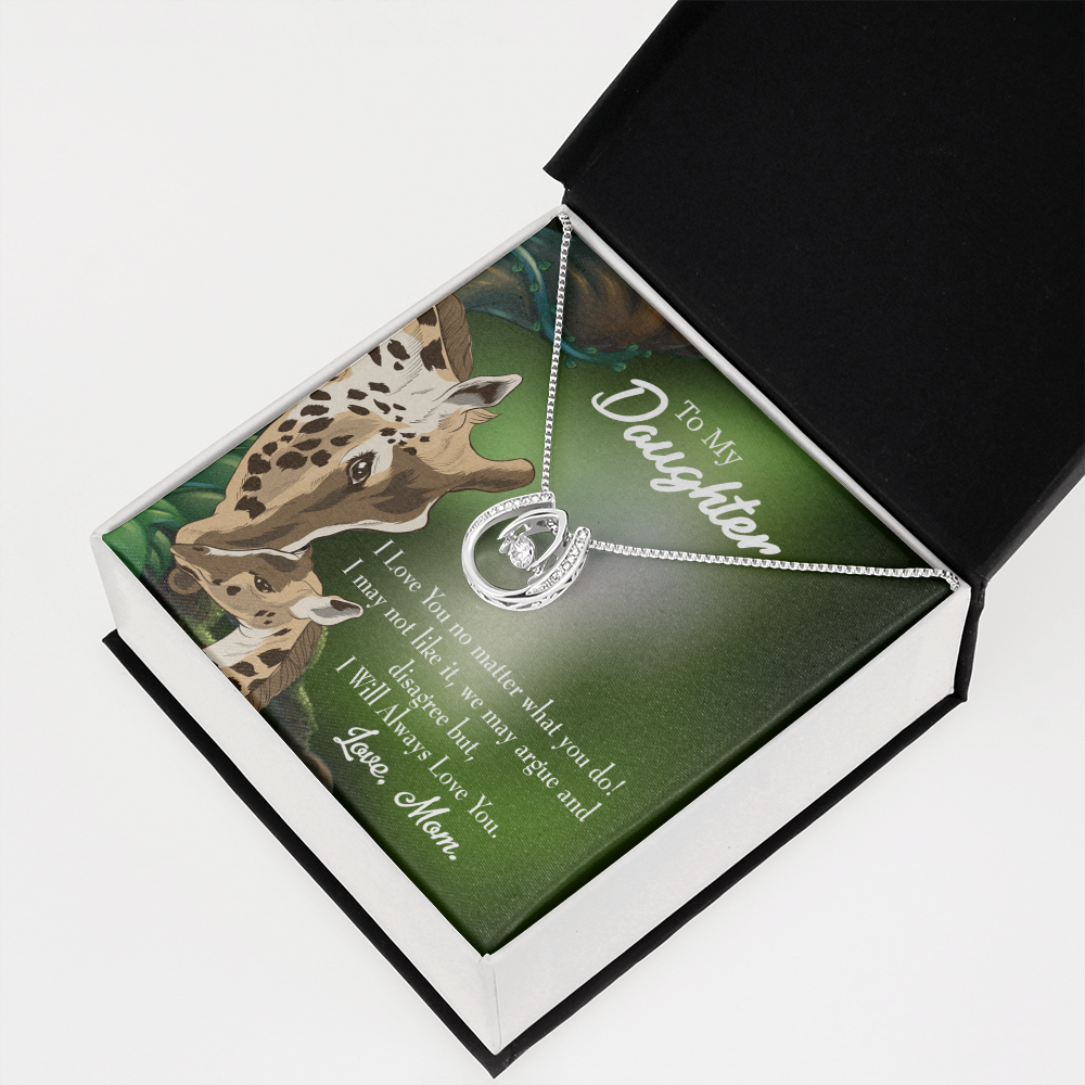 To My Daughter Mom Loves You No Matter What Lucky Horseshoe Necklace Message Card 14k w CZ Crystals