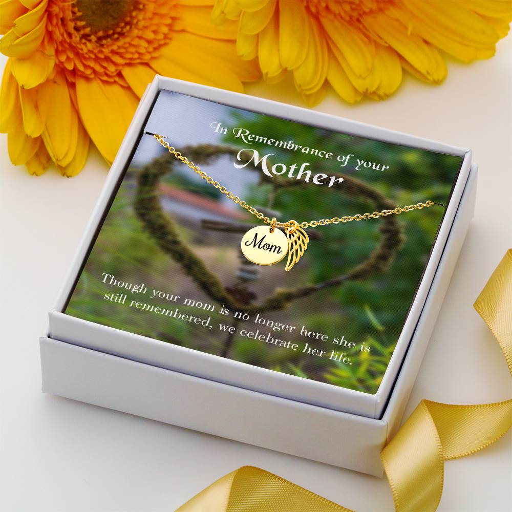 Mom No Longer Here Mom Remembrance Necklace Angel Wing Charm, Stainless Steel 18-22'' Chain