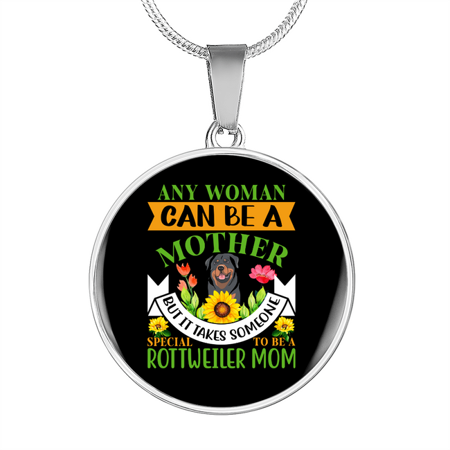 Mother Rottweller Mom Circle Necklace Stainless Steel or 18k Gold 18-22"