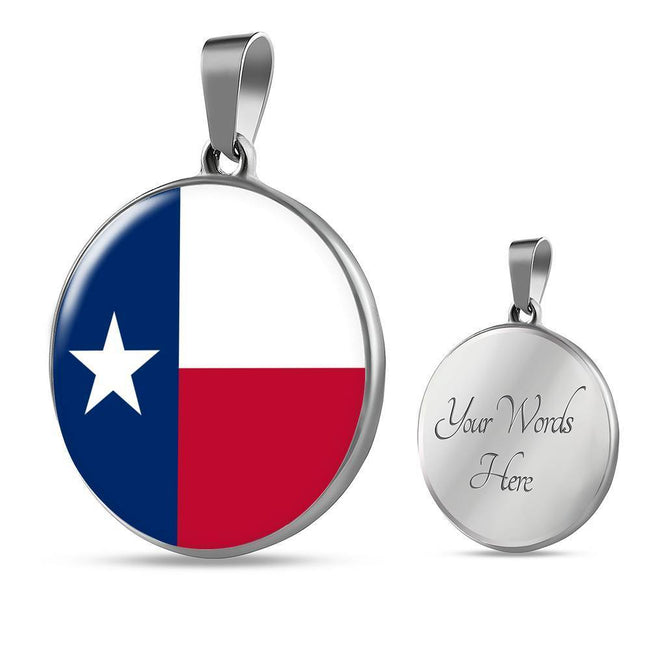 Texas State Flag Necklace Stainless Steel or 18k Gold Circle Pendant 18-22"