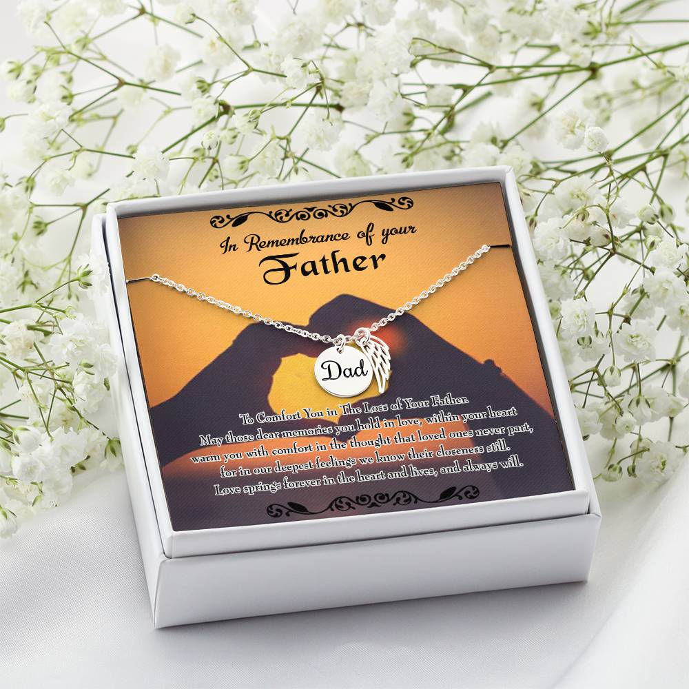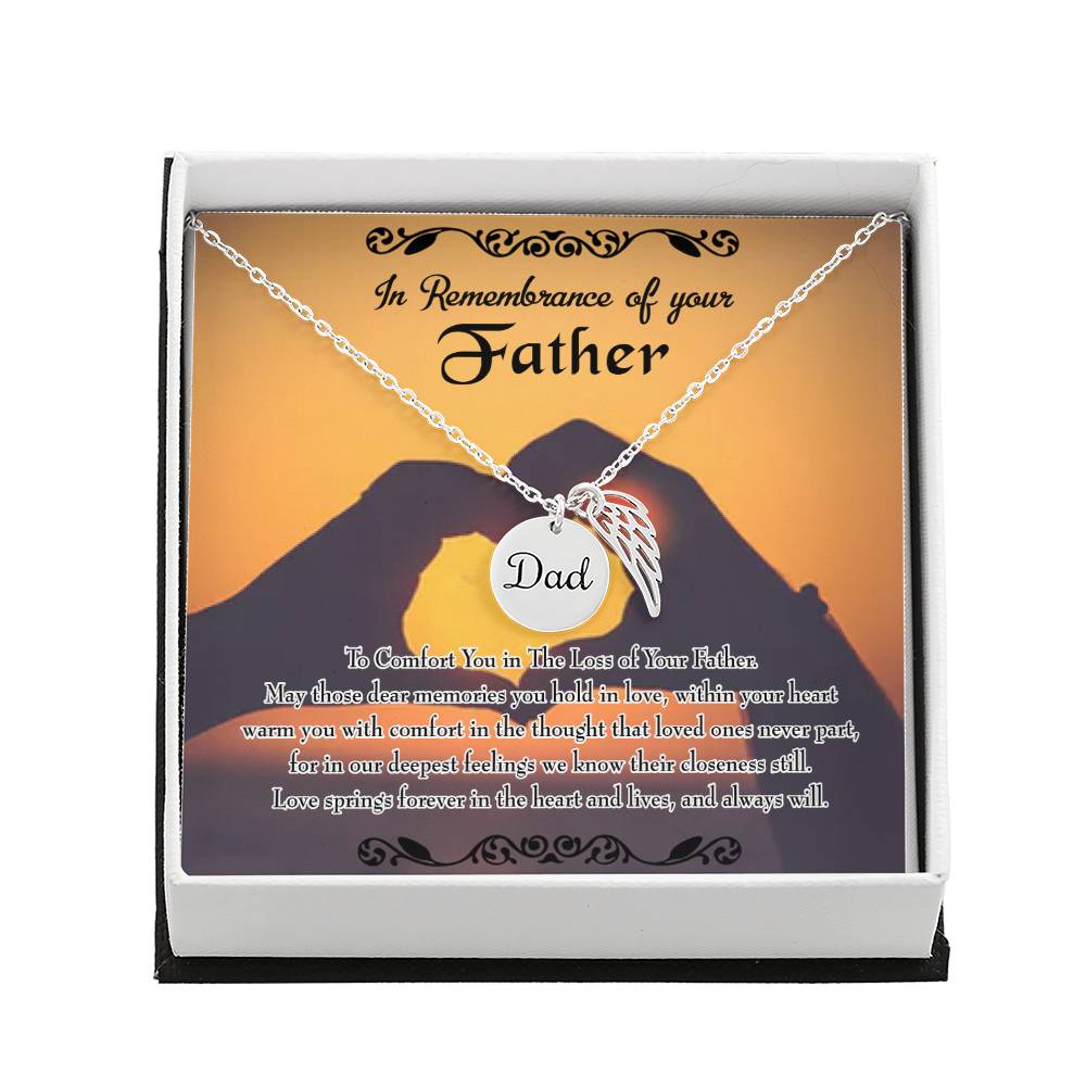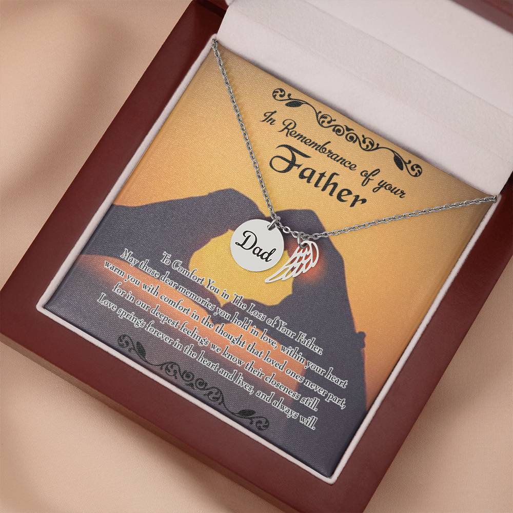 To Comfort You Remembrance Necklace for Dad Angel Wing Charm Stainless Steel or 18k Gold Finish