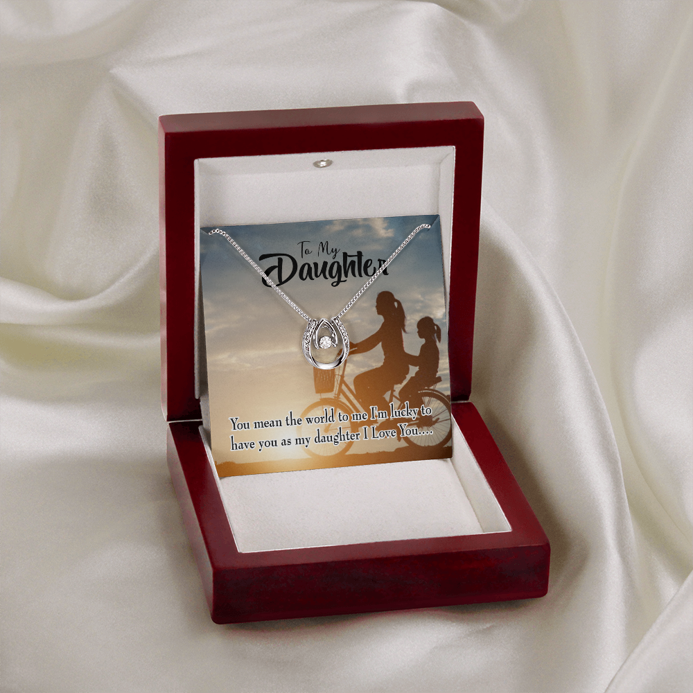 To My Daughter You Mean the World to Mom Lucky Horseshoe Necklace Message Card 14k w CZ Crystals