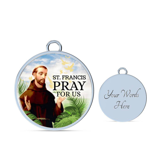 Catholic St. Francis Circle Bangle Bracelet Stainless Steel or 18k Gold