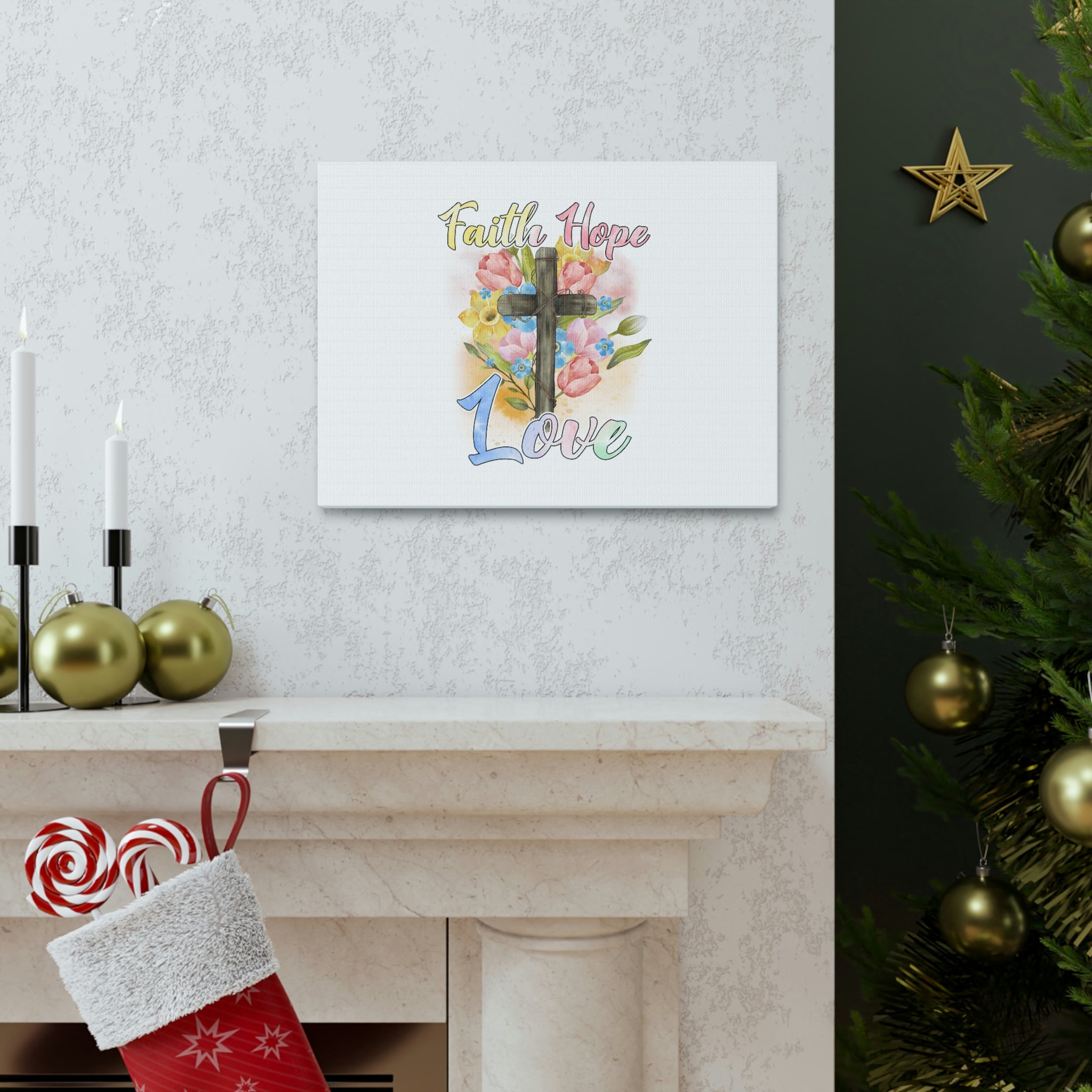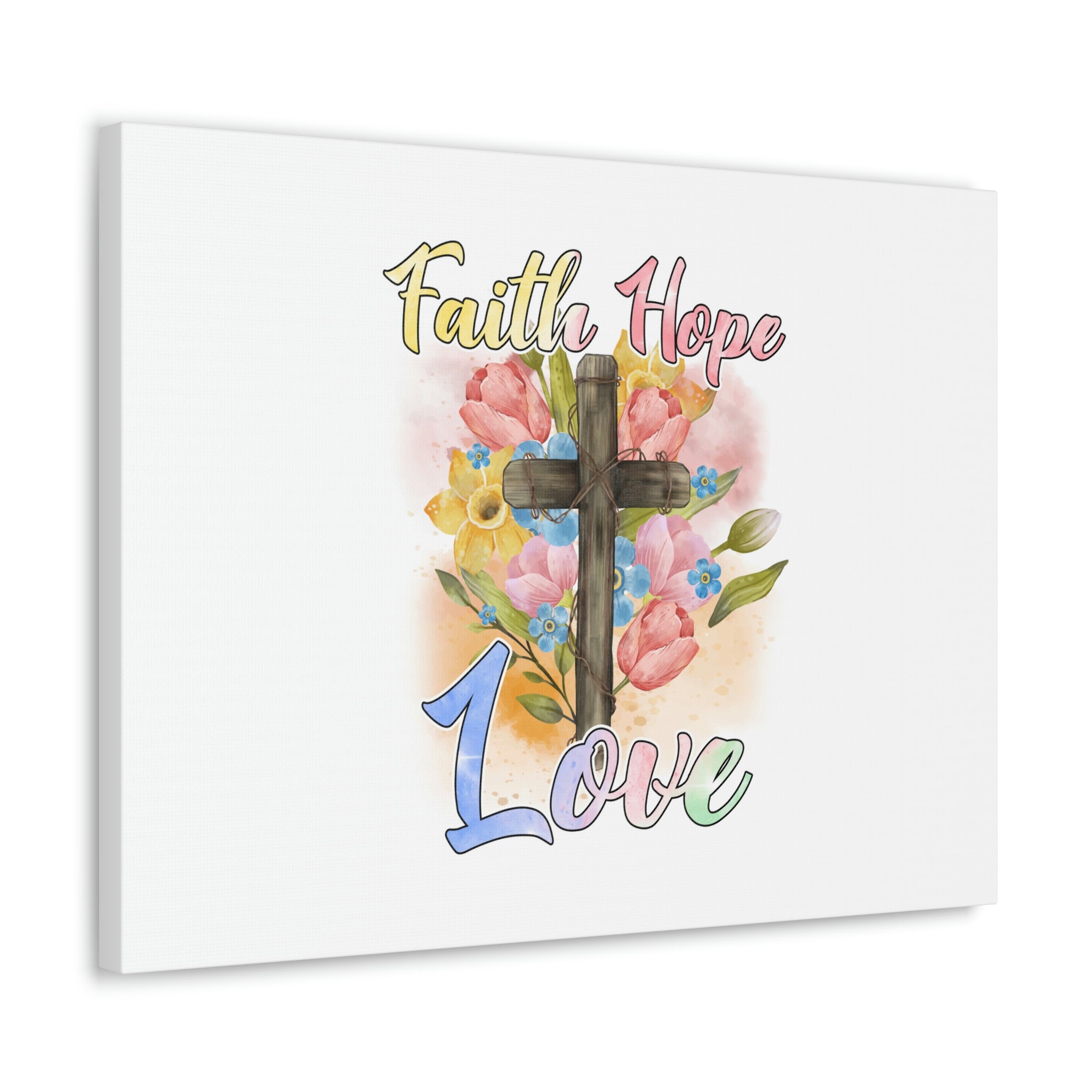 Scripture Walls Faith, Hope, Love 1 Corinthians 13:13 Cross Flowers Christian Wall Art Bible Verse Print Ready to Hang Unframed