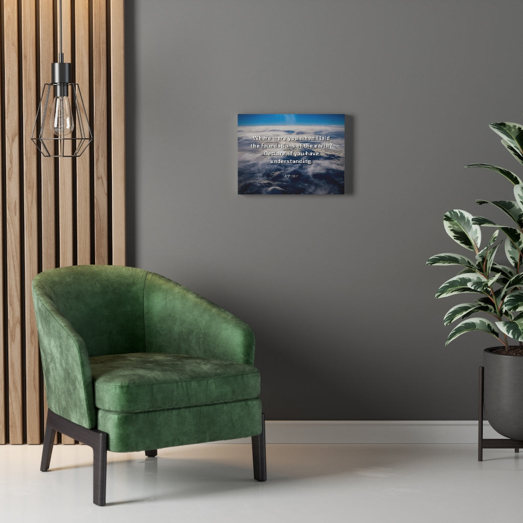 Scripture Walls Foundations Of Earth Job 38:4 Bible Verse Canvas Christian Wall Art Ready to Hang Unframed